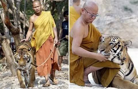 Cọp đang nuôi trong chùa sống chung với tu sĩ Phật Giáo
