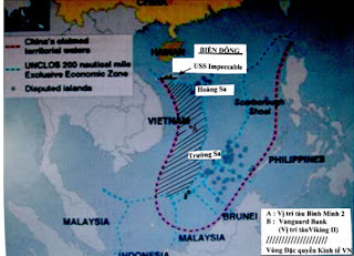 Từ tháng 7/2010, sau khi bà ngoại trưởng Hillary Clinton công bố chính sách xem sự tự do lưu thông trên Biển Đông là quyền lợi sinh tử của Hoa Kỳ, Trung quốc đã tỏ ra bất bình và bắt đầu áp dụng mọi biện pháp để áp đặt quyền ưu tiên của mình trên Biển Đông .
