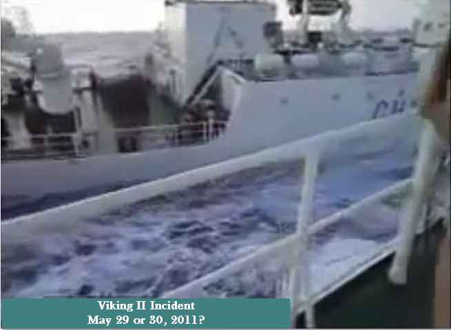 Trong hai ngày liên tiếp 29 & 30/5 trong khi tàu khảo sát Viking II do PetroVietnam thuê tìm dầu khí trong bãi Tư Chính (Vanguard Bank), một tàu hải giám Trung quốc đến cắt giây kéo dụng cụ tìm dầu. Lực lượng bảo vệ Viking II của Việt Nam đã ngăn cản đuổi tàu hải giám của Trung quốc đi. Đoạn phim do Việt Nam phổ biến ngày 6/11/2011 có lẽ là đoạn phim ghi lại cuộc săn đuổi này (xem hình).