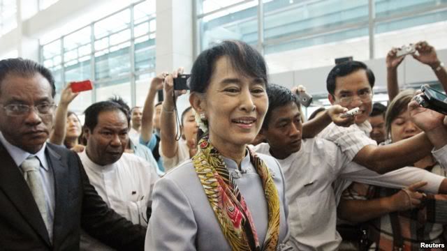 Bà Aung San Suu Kyi thực hiện chuyến công du lịch sử tới Châu Âu ![]() Bà Aung San Suu Kyi của Myanmar tại sân bay quốc tế Yangon, ngày 13/6/2012 VOA - 13.06.2012 Nhà hoạt động dân chủ lâu năm của Miến Điện Aung San Suu Kyi đã rời nước này để thực hiện một chuyến công du lịch sử tới Châu Âu, nơi bà cũng sẽ chính thức nhận giải Nobel Hòa bình dành cho bà từ cách đây hơn 20 năm. Nhà lãnh đạo đối lập, người đã bị quản thúc tại gia phần lớn thời gian trong 2 thập niên qua, đã rời Rangoon ngày hôm nay để thực hiện chuyến đi tới Châu Âu đầu tiên của bà trong 24 năm qua. Trước khi rời Miến Điện, bà nói với các phóng viên tại sân bay rằng bà hy vọng chuyến công du sẽ là cơ hội để mở rộng tầm mắt. Tại Geneva vào ngày mai, bà sẽ đọc bài diễn văn thường niên tại hội nghị của Tổ chức Lao động Quốc tế. Kế đó, bà sẽ tới Na Uy để đọc diễn văn nhận giải Nobel Hòa bình năm 1991 mà nhiều người đã trông đợi bấy lâu nay. Bà đã không thể đích thân nhận giải này vì bị giam giữ. Bà Aung San Suu Kyi sau đó sẽ có chặng dừng chân ngắn ở Ireland để nhận một giải thưởng về Nhân quyền của Tổ chức Ân xá Quốc tế từ ngôi sao nhạc rock Bono, và sẽ tiếp tục tới Anh nơi bà đã được mời đọc diễn văn tại cả hai viện quốc hội. Nhà hoạt động dân chủ 67 tuổi, người đã từng sống ở Anh nhiều năm với người chồng – nay đã qua đời – cũng dự kiến sẽ có nhiều thời gian riêng tư trong thời gian bà công du Châu Âu. Đây là chuyến công du nước ngoài thứ hai của bà và sau một chuyến thăm 5 ngày tới Thái Lan. Chuyến công du của bà được thực hiện vào lúc chính phủ dân sự trên danh nghĩa của Miến Điện đã bắt đầu thực hiện các cải cách dân chủ sau nhiều thập niên quân đội cầm quyền. Nhà lập pháp mới đắc cử dự kiến sẽ trở lại Miến Điện để kịp dự phiên tái nhóm của quốc hội vào ngày 4/7, khi quốc hội nước này sẽ xem xét các luật lệ quan trọng gồm cả luật về quản lý truyền thông và đầu tư nước ngoài. |