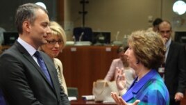 Các nhà lãnh đạo Liên hiệp châu Âu, tức EU, loan báo các biện pháp trừng phạt mới ngày hôm qua, thứ Hai, tại Brussels. Bà Catherine Ashton, Trưởng ban Chính sách đối ngoại EU, nói rằng các biện pháp trừng phạt này sẽ ngăn cấm không cho vũ khí được đưa đến Syria.